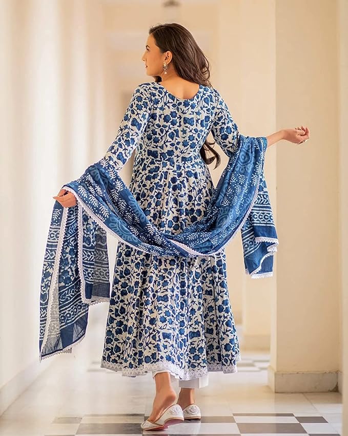 Nermosa Women Printed Anarkali Kurta and Pant Set with Dupatta