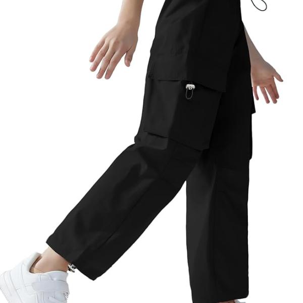 Girls Cargo Pants Baggy Joggers Lightweight Elastic Waist Drawstring with Pockets Casual Travel Hiking Streetwear