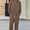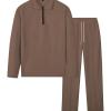Smart two-piece design – Long-sleeve collar top with concealed half-zip pairs with relaxed joggers featuring contrast draw-cord to deliver an effortless airport-to-after-hours look.
