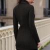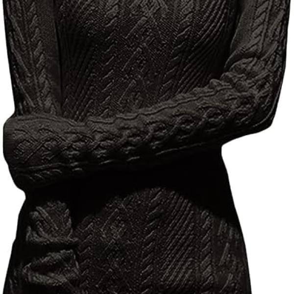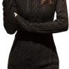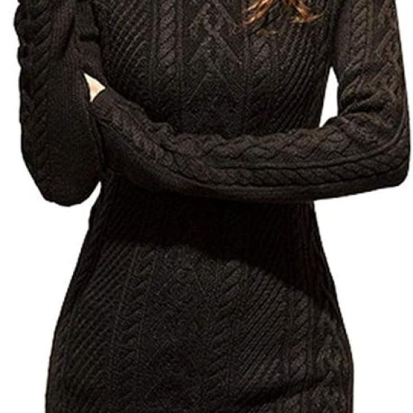 v28 Women Polo Neck Long Slim Fitted Dress Bodycon Turtleneck Cable Knit Sweater