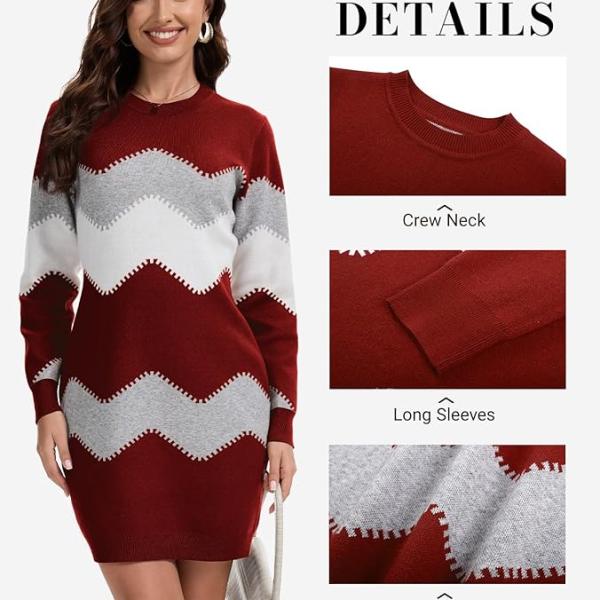 【Slimming Design & Feminine Details】The stripes and ribbed knit texture create an optical slimming effect, elongating your silhouette. Color-block panels at the waist subtly highlight your figure, making it ideal for office, dates, or holiday parties.