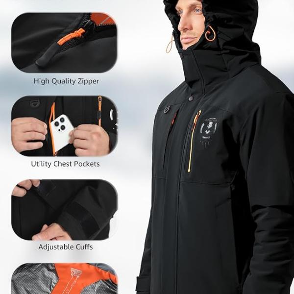 Weather Protection: Waterproof and windproof shell with reinforced stitching protects against rain, snow, and wind. Durable thermal insulation helps retain body heat in cold conditions