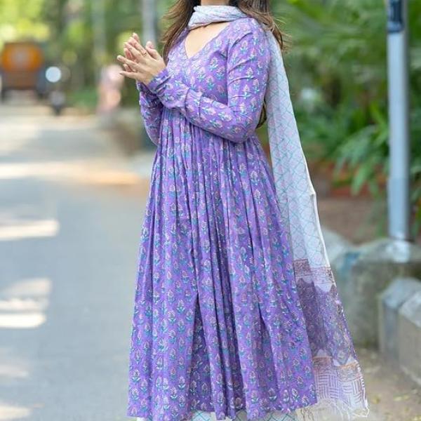 Product Material :- Viscose || Colour :- purple || Pattern :- Anarkali Printed ||