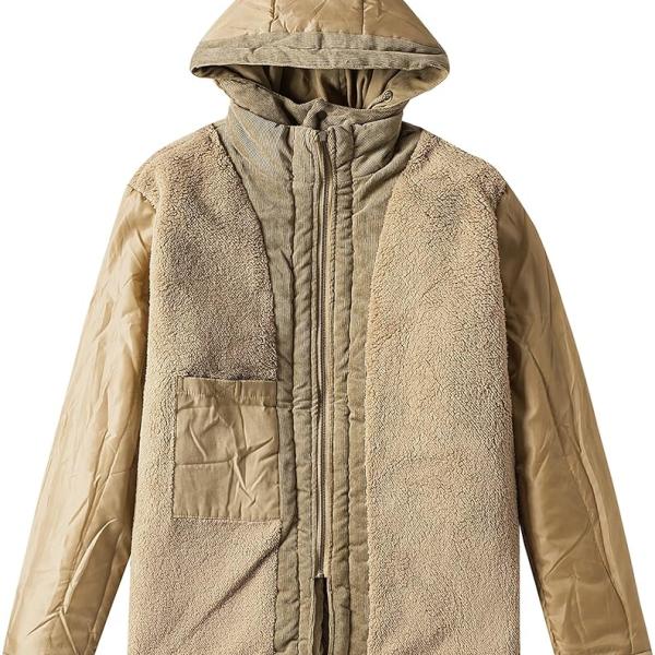 Our Product has made great adjustments after August 2023. The jacket currently produced are US sizes. zippers and buttons on the right. Hood and sherpa lining are not removable, chest pockets are real.
