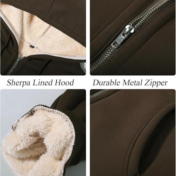 Autumn winter warm thicken heavy weight fleece sherpa lined full zip hoodie sweatshirt jacket coat made from high quality extra soft cotton fleece lining add more warmth and comfort, help block out cold and chill.