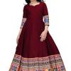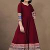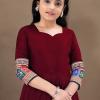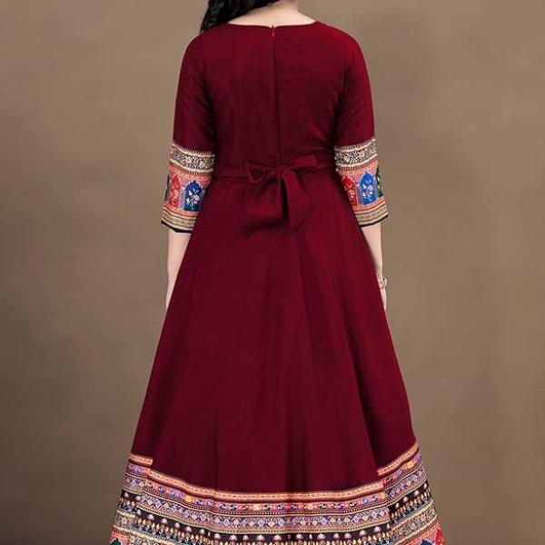 Dress your little one in the rich beauty of tradition with this stunning maroon flared gown. Designed with vibrant multicolor Printed borders on dress & sleeves hem, offering a stunning blend of elegance and cultural charm.—perfect for weddings, festivals, and family celebrations.