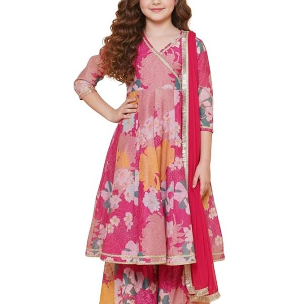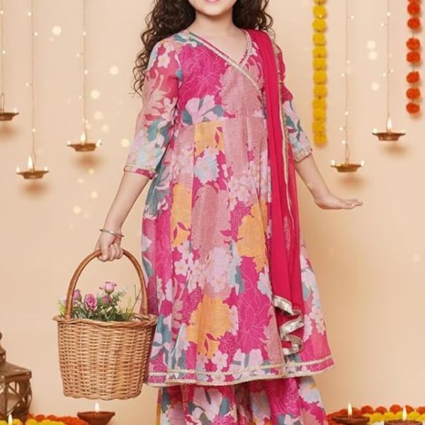 Naixa Girls Rayon Fabric Floral Printed 3/4 Sleeve Sharara Dress Set For All Occasion salwar suit
