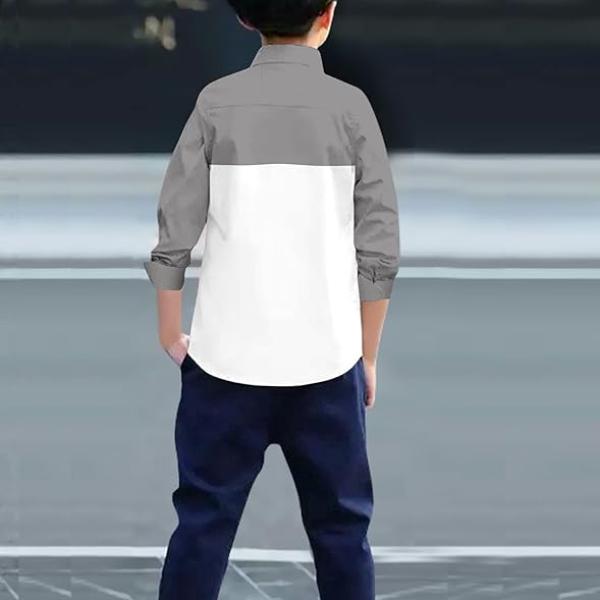 Boys Half & Half Long Sleeve Shirts Classic Collared Button-Down Tshirt Solid Cotton Letter Printed Kids & Junior Boys Shirt