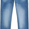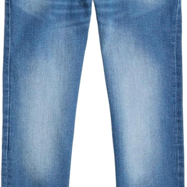 Cotton blend; traditional 5-pocket design