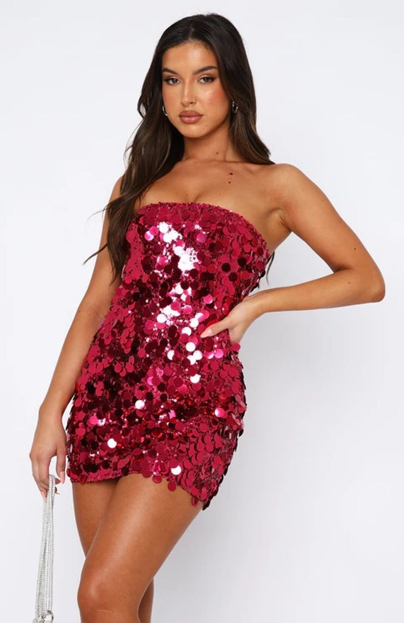European and American cross border women's clothing 2025hot style solid color sleeveless tube top off shoulder sexy sequin hip dress