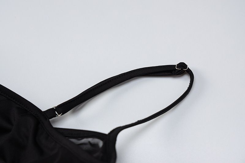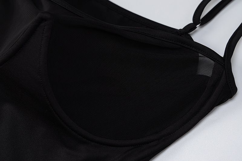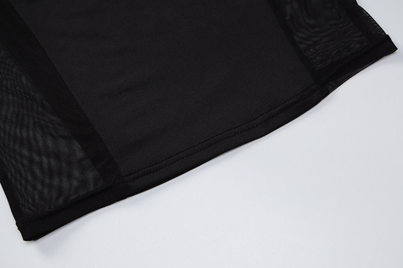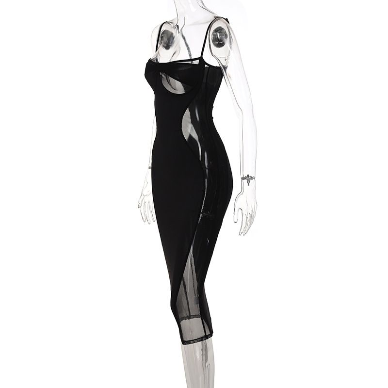 Feng 2023 Summer Popular New Mesh Splice Solid Color Chest Support Slim Fit Dress for Women