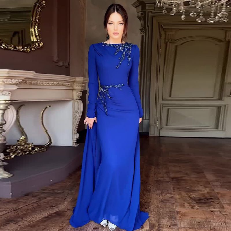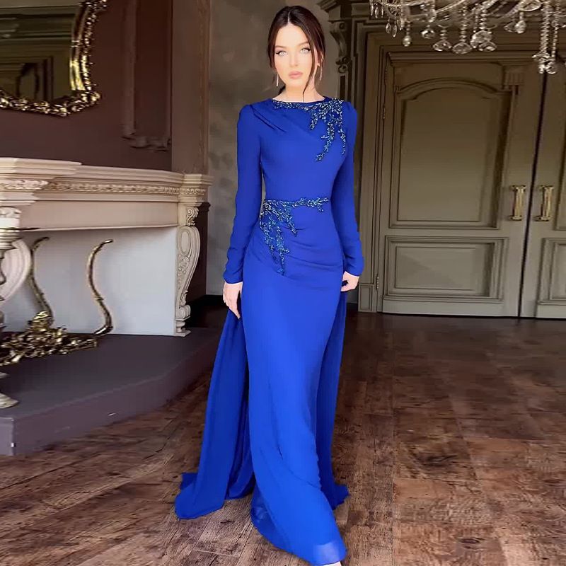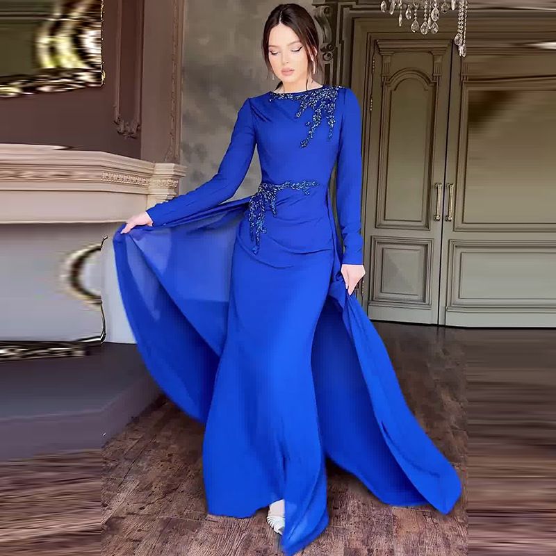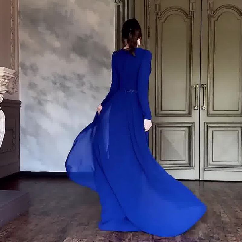 Women’s Clothing Autumn New Celebrity Style Round Neck Light Luxury High End Mesh Splicing Dress