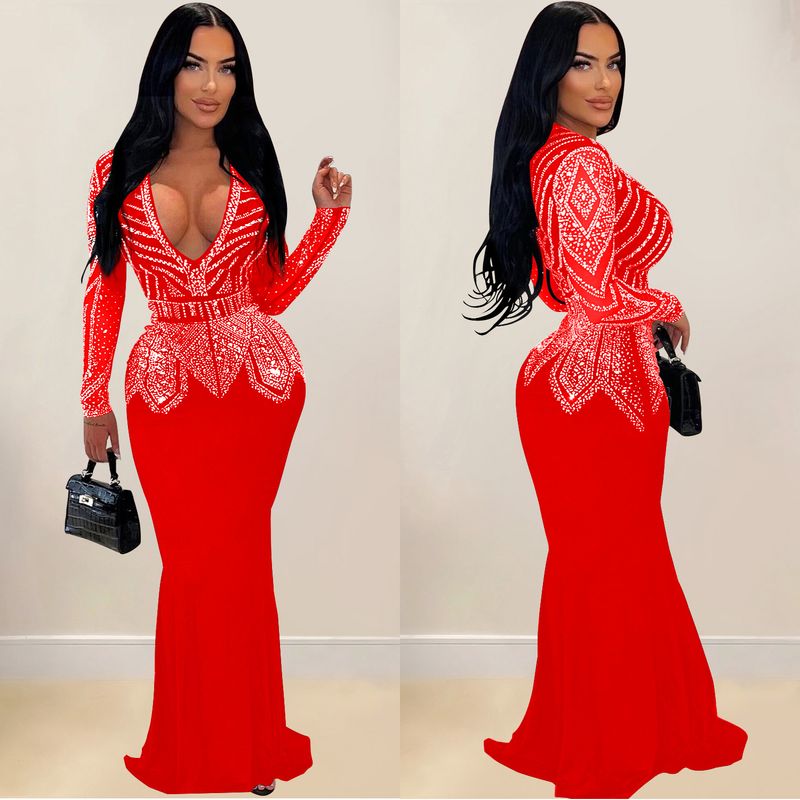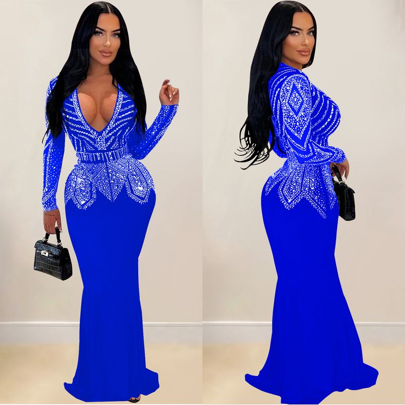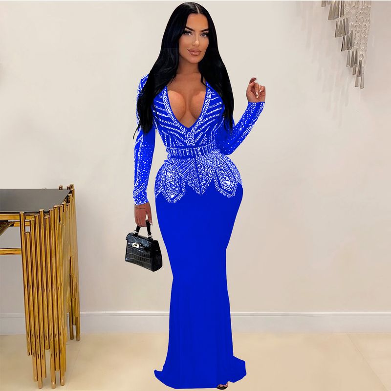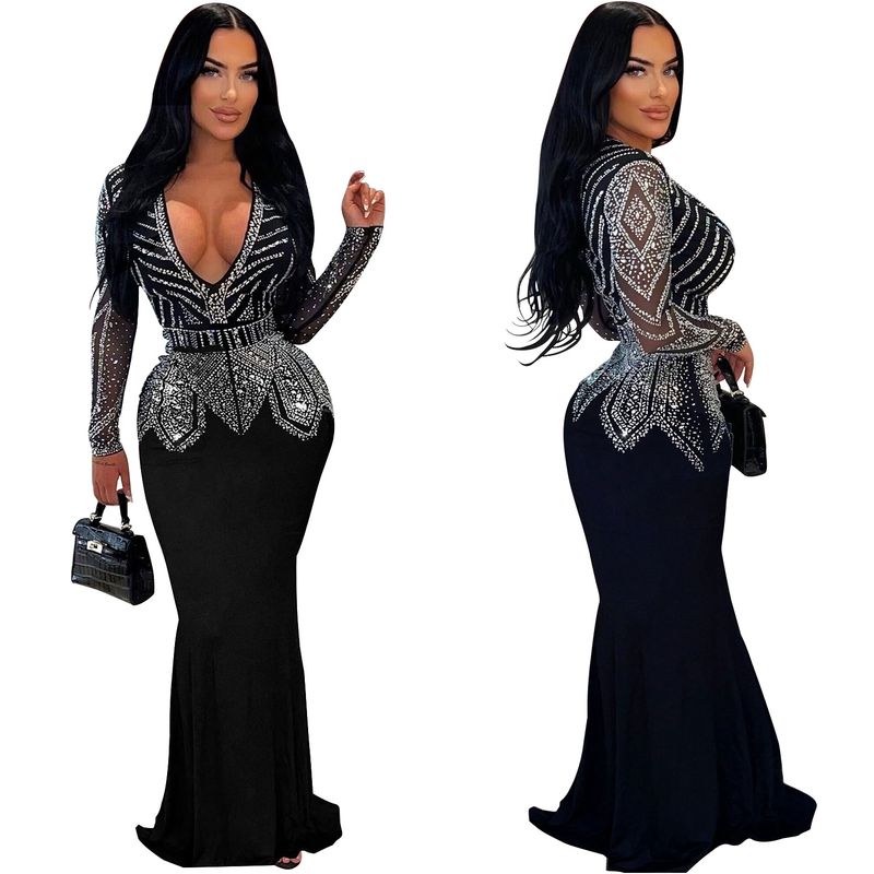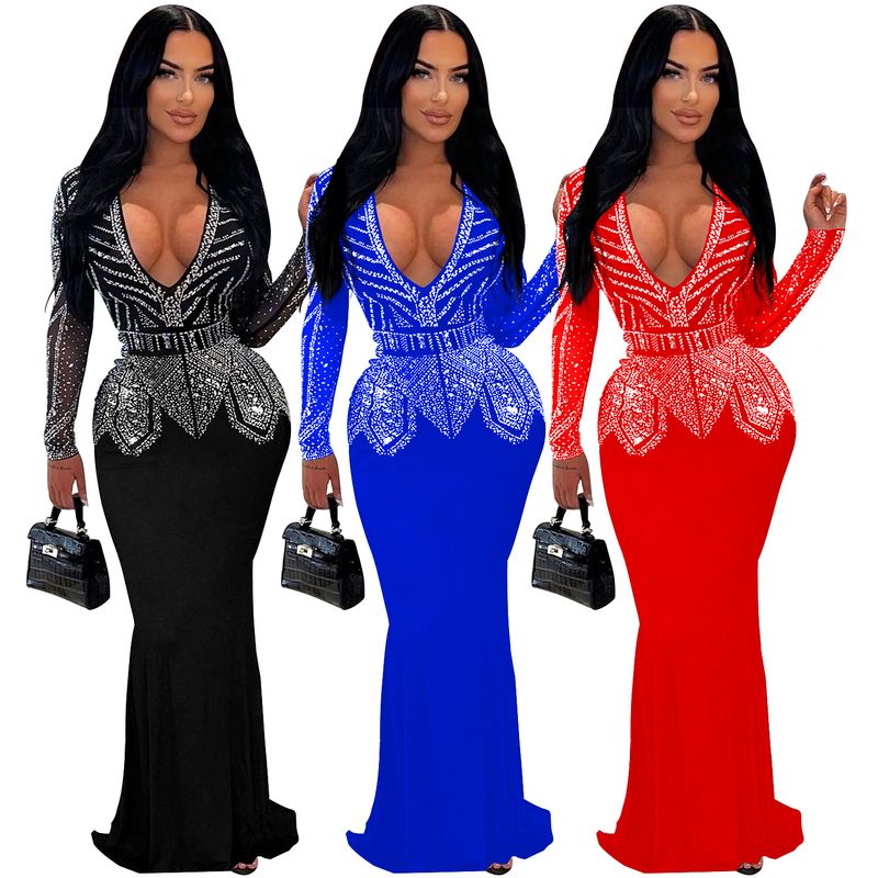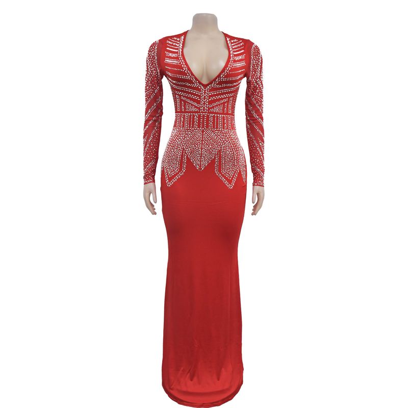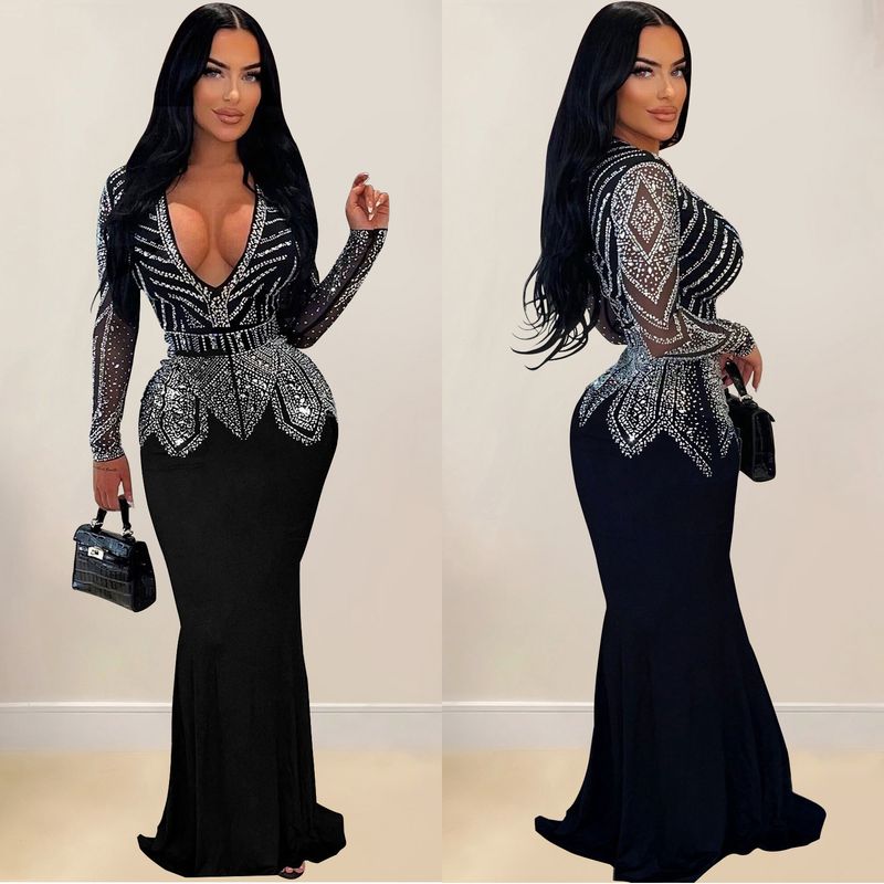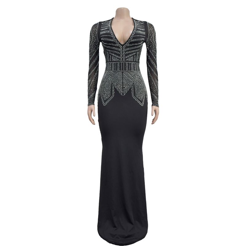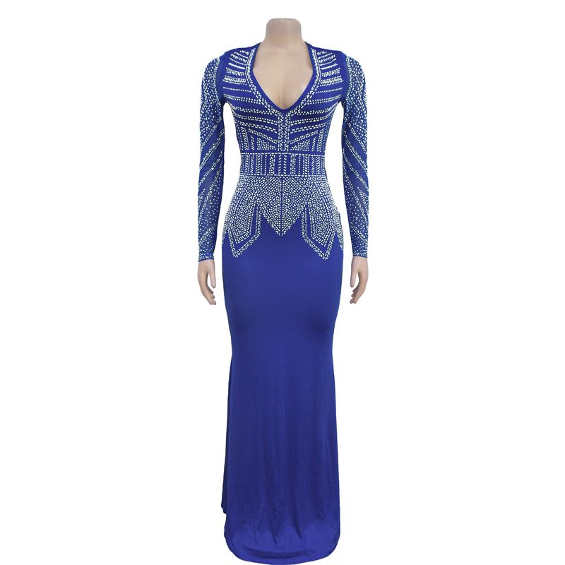 Women’s Clothing Fashion Women's New Hot Diamond Long Skirt Dress V neck