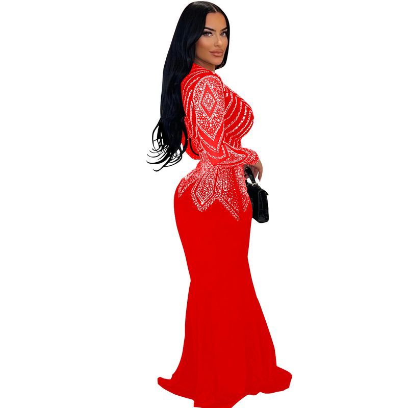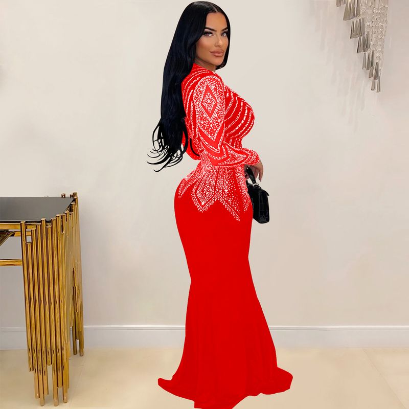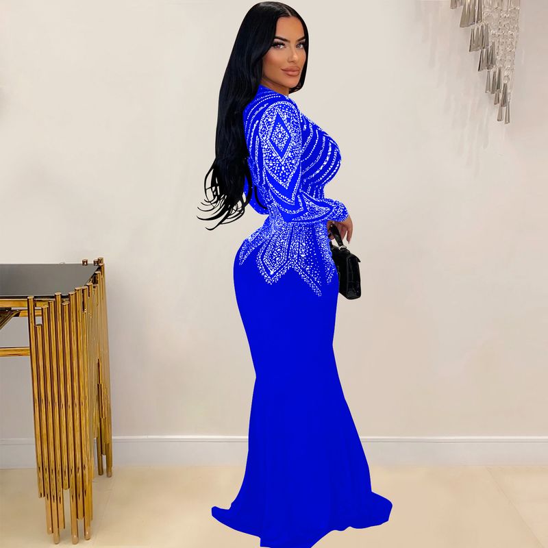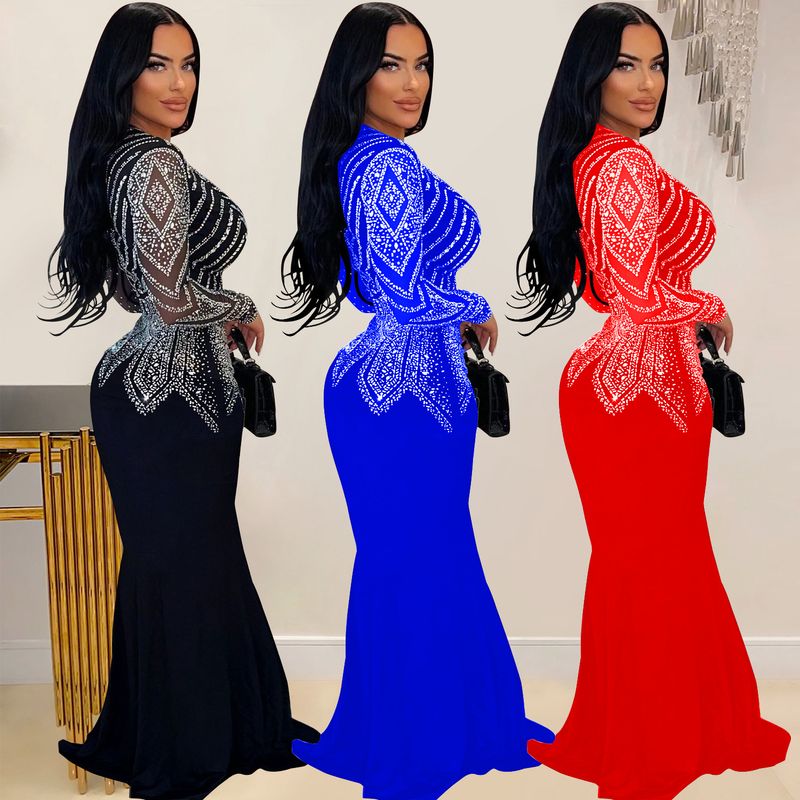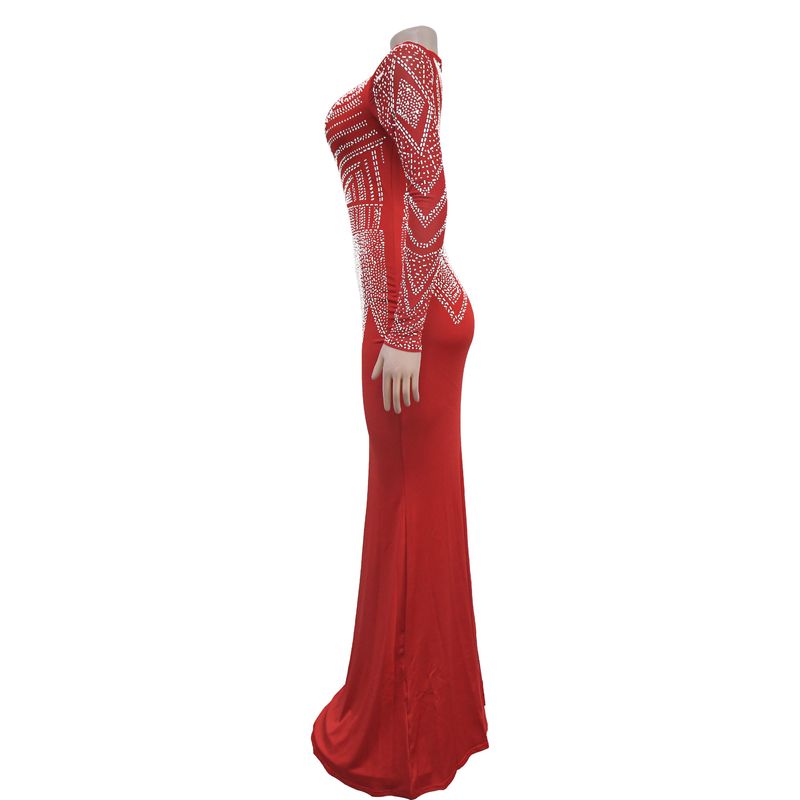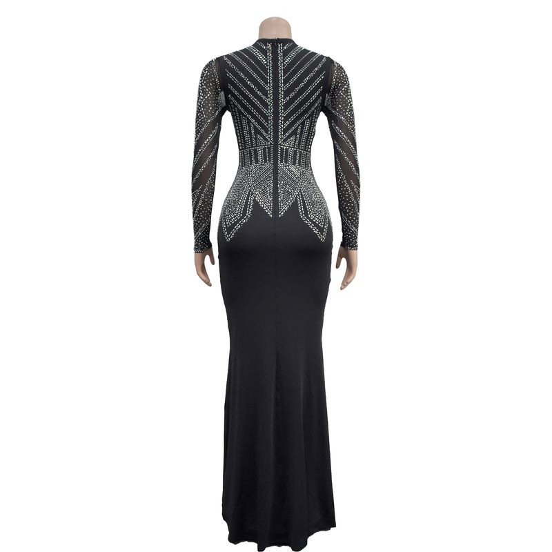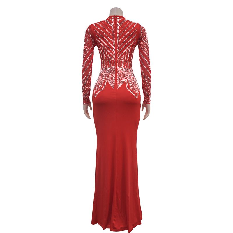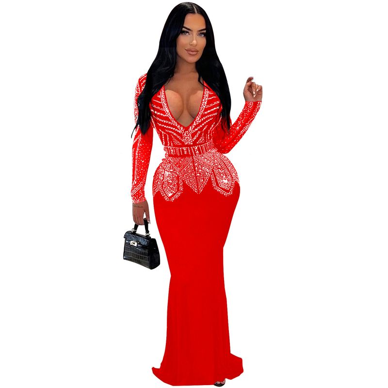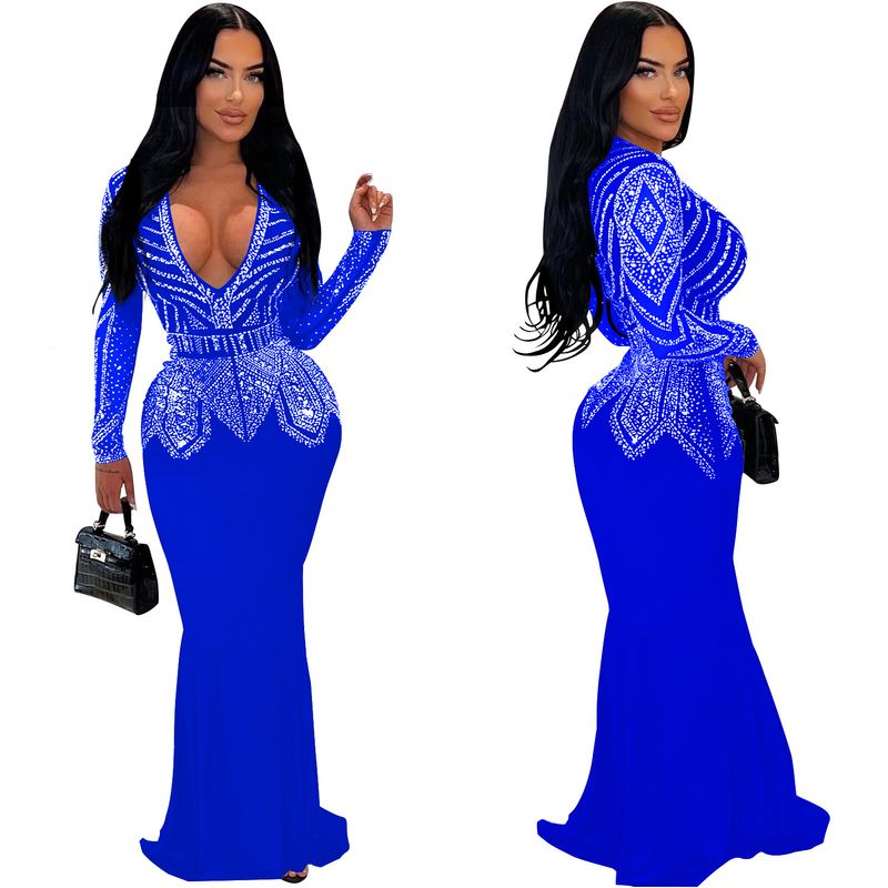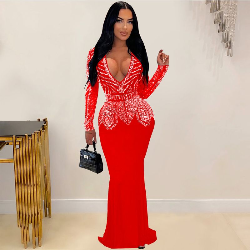 Women’s Clothing Fashion Women's New Hot Diamond Long Skirt Dress V neck