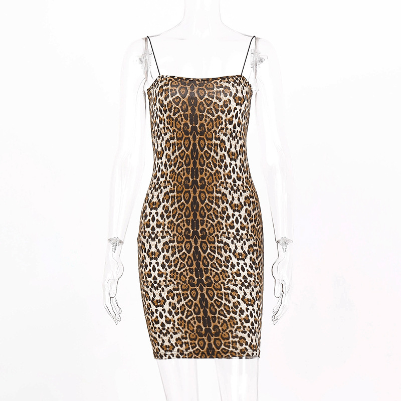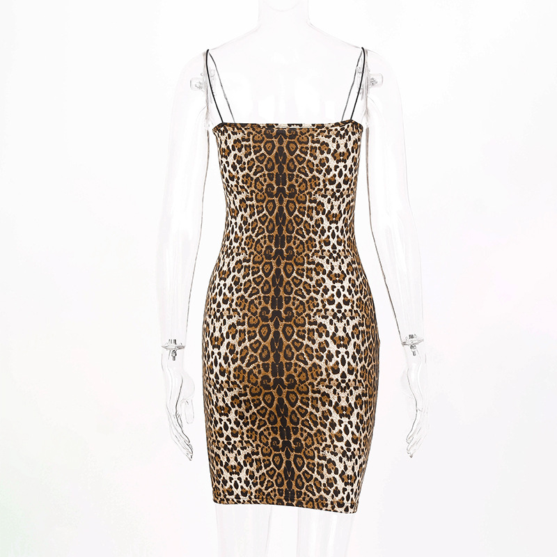 Women's Clothing Casual Leopard Print Suspender Short Sleeveless Dress