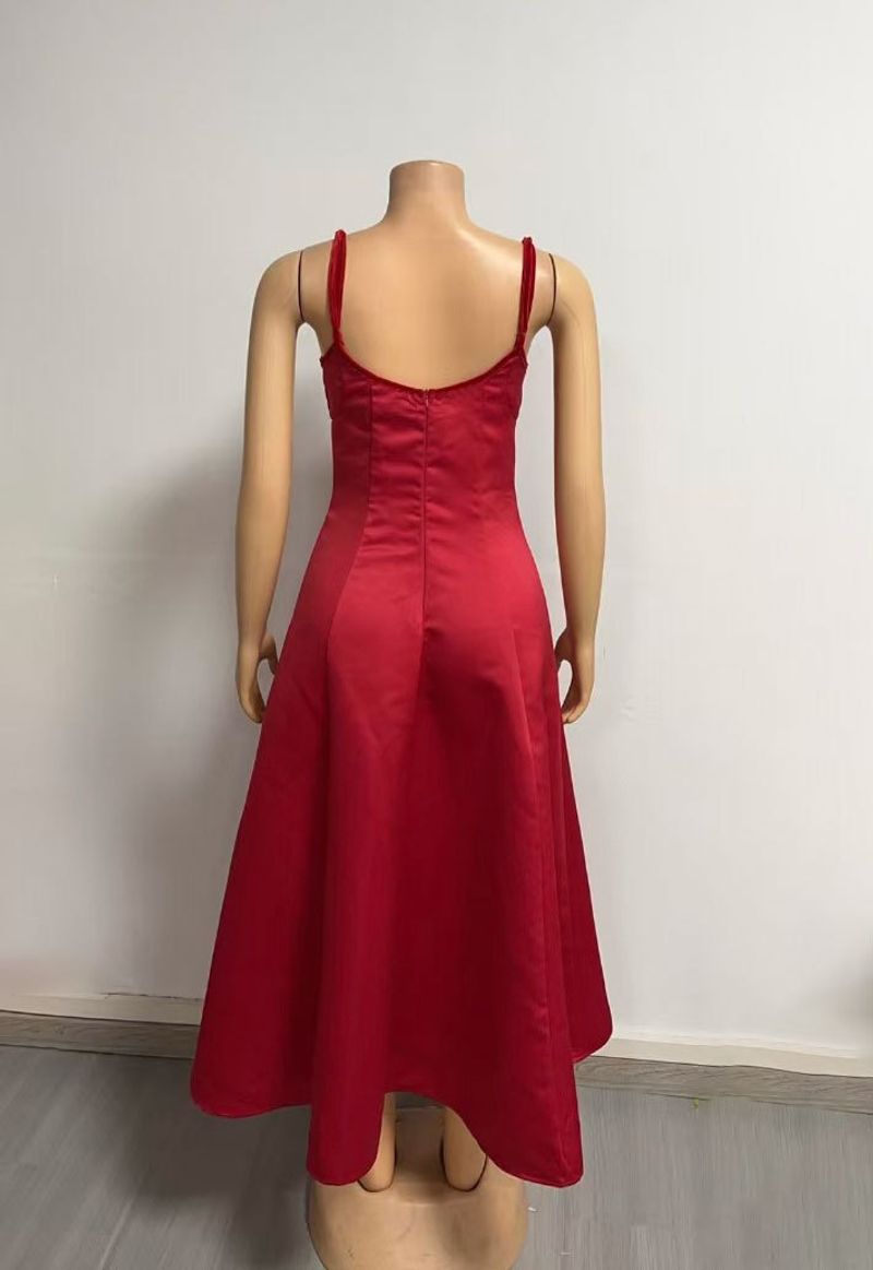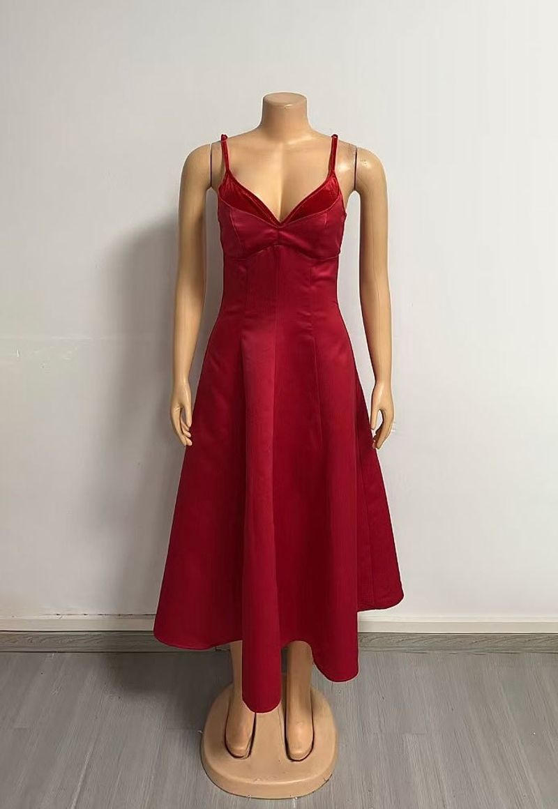 Women's Clothing New Solid Color Sling V Neck Low Cut Sexy Backless Waist Length Dress
