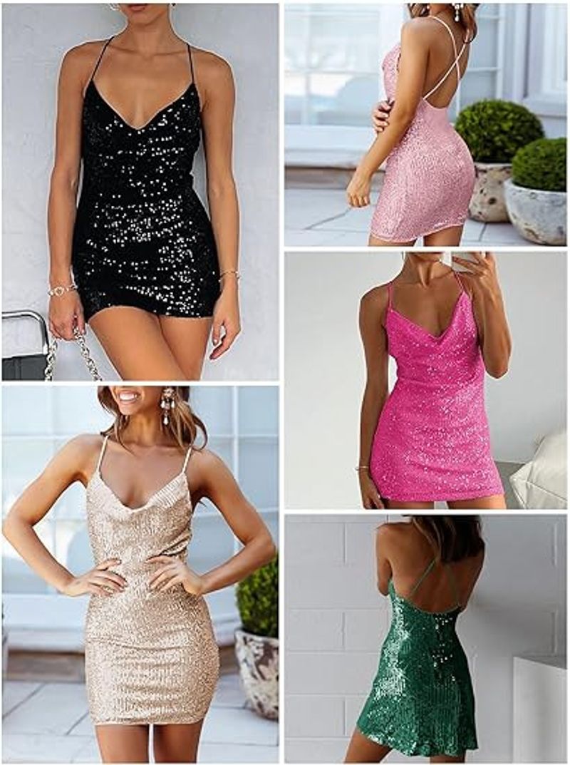 Women's Clothing New Suspender Skirt Sexy Backless Sequined Flash Dress Nightclub Party Dress