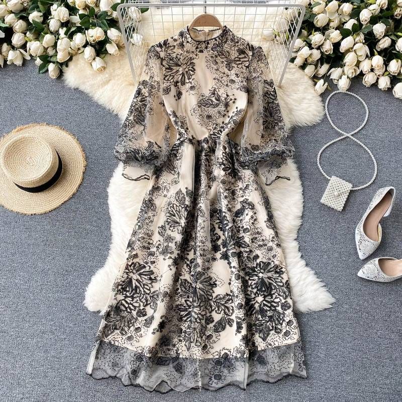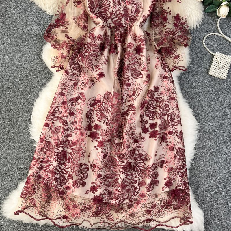 Women's Clothing Palace Style Heavy Embroidery Mesh Dress Skirt Noble And Elegant Temperament Women's Dress