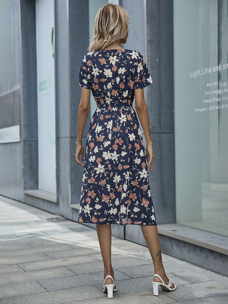 Women's Clothing Summer Small Floral Print Short Sleeve Dress
